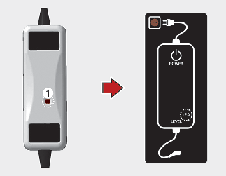 Laadimistaseme reguleerimiseks vajutage juhtploki taga asuvat nuppu (1) üle 2-8 sekundit. (Vaadake laadimiskaabli tüüpi ja laadimistaseme määramise näidet.)
