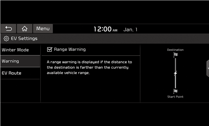 Saate seadistada talverežiimi, hoiatus- ja EV marsruudi funktsioone.