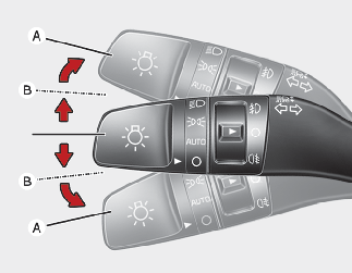 Suunatulede toimimiseks peab süüde olema sisse lülitatud. Suunatulede käitamiseks liigutage hooba üles või alla (A). Armatuurlaual olevad rohelised nooled näitavad, milline suunatuli töötab.