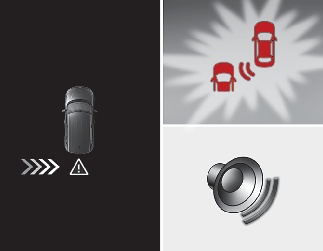 Kui tagumise põiksuunalise liikluse töötingimused on täidetud, kuvatakse hoiatus iga kord, kui teie peatatud (0 km/h kiirusel) sõiduki küljele või tagaosale läheneb teine sõiduk.