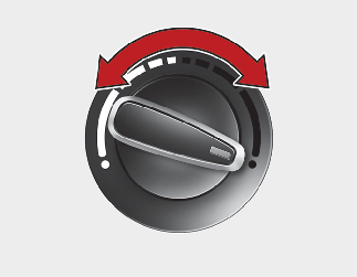 La manopola di registrazione temperatura consente di controllare la temperatura dell'aria proveniente dal sistema di ventilazione. Per cambiare la temperatura dell'aria nell'abitacolo, ruotare la manopola verso destra per l'aria tiepida o calda o verso sinistra per l'aria fredda.
