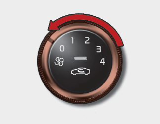 La manopola di regolazione della velocità del ventilatore permette di regolare la velocità del flusso d'aria che esce dal sistema di ventilazione. Per variare la velocità del ventilatore, ruotare la manopola verso destra per aumentarla e verso sinistra per ridurla.