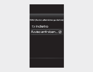 Se si seleziona 'Avviso anti-sbandamento', la funzione informerà il conducente del livello di attenzione e consiglierà di fare una pausa quando il livello scende sotto una certa soglia.