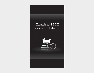 Se si preme il pulsante di Assistenza alla guida, l'interruttore RES+ o SET- quando le condizioni operative della funzione non sono soddisfatte, sul quadro strumenti verrà visualizzato il messaggio "Smart Cruise Control conditions not met" (Condizioni modalità SCC non soddisfatte) accompagnato da un segnale acustico.