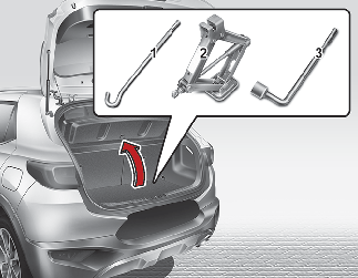Sollevare la copertura nel vano bagagli per raggiungere questi attrezzi.
