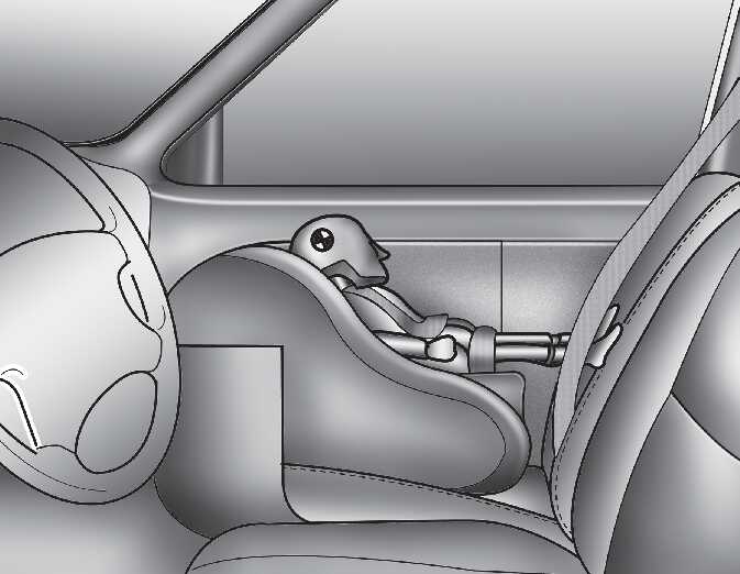 동승석 에어백이 장착된 차량은 동승석에 유아용 보호장치를 설치하지 마십시오. 특히 차량 진행 방향의 반대 방향으로 설치하면 에어백 작동에 의해 심하게 다치거나 사망할 수 있습니다.(그림 참고)
