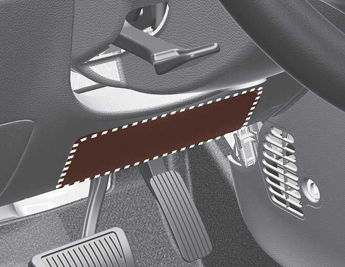 무릎 에어백은 운전석 밑에 로어 크래쉬패드 패널 안에 장착되어 있습니다.