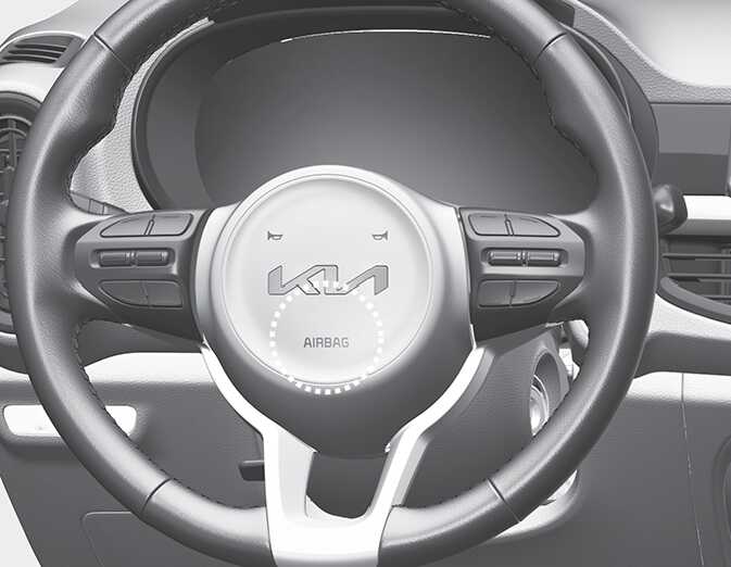 운전석 에어백은 스티어링 휠에 내장되어 있습니다.