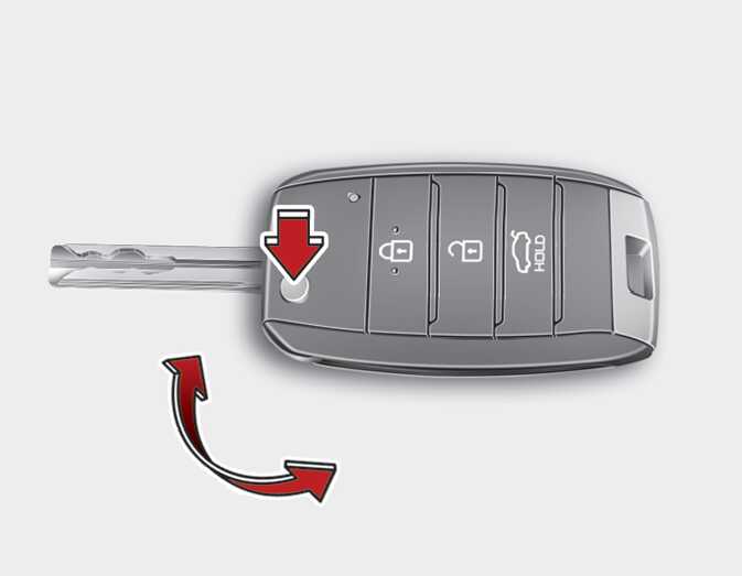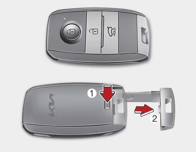 버튼(1)을 누른 상태에서 키를 분리하십시오(2).