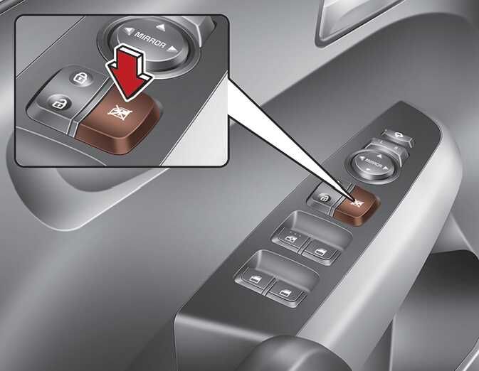운전석 도어에 있는 유리창 열림/닫힘 잠금 버튼을 누르면 뒷좌석의 유리창 열림/닫힘 스위치 작동을 잠금 시킬 수 있습니다.