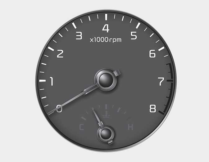 1분당 엔진 회전수(rpm)를 나타냅니다. 적정한 변속시기를 선택하는데 사용하고 엔진의 과회전 또는 과부하를 방지하십시오.