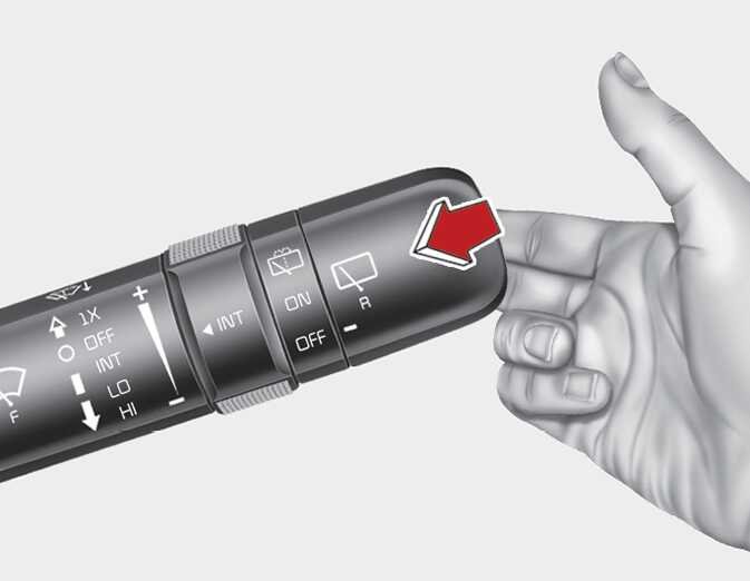 스위치를 운전자 방향으로 당기면 와셔액이 분출되면서 와이퍼가 수회 작동합니다. 스위치를 계속 당기고 있으면 당기고 있는 동안 와이퍼가 작동하면서 와셔액이 분출됩니다.