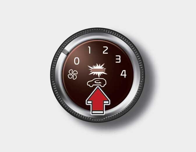 노브를 실내 순환 으로 내/외기 버튼을 누르면 바깥 공기는 차단하고, 차 안의 공기만 순환하므로 바깥 공기가 오염되어 있을 때와 최대 냉난방을 필요로 할 때 이 위치로 하십시오.