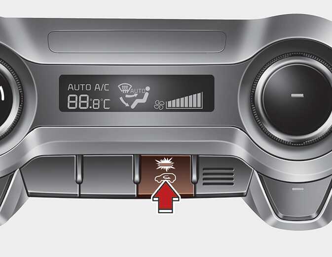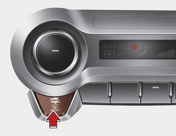 앞유리 서리 제거 버튼을 한 번 더 누르면 버튼내 표시등이 꺼지고, 각 버튼이 앞유리 서리 제거를 선택하기 이전 설정 상태로 되돌아 갑니다.