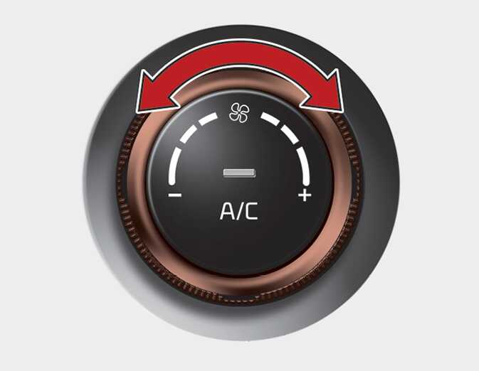 오른쪽으로 돌리면 풍량이 많아지고 왼쪽으로 돌리면 풍량이 적어집니다. 표시창에 풍량의 정도가 표시됩니다.