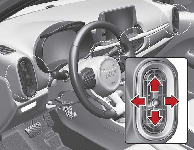 송풍구로 나오는 바람을 상·하·좌·우 원하시는 방향으로 조절하십시오.