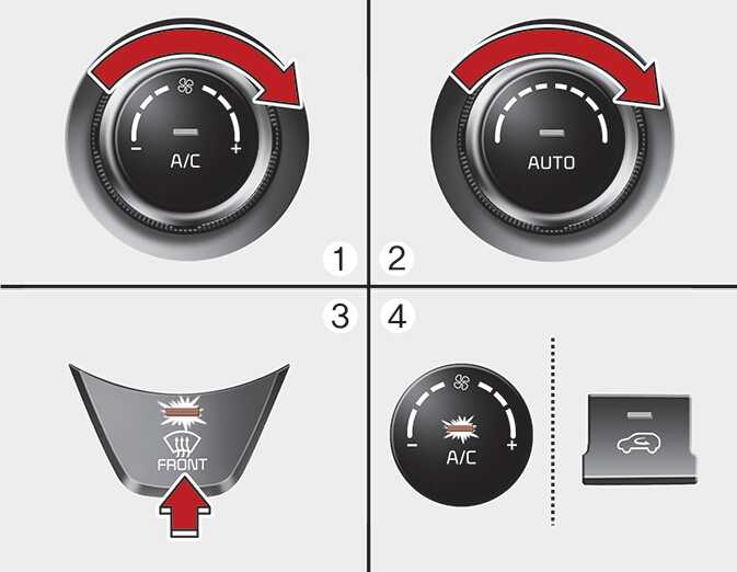 앞유리 서리 제거 선택 버튼을 누르십시오.