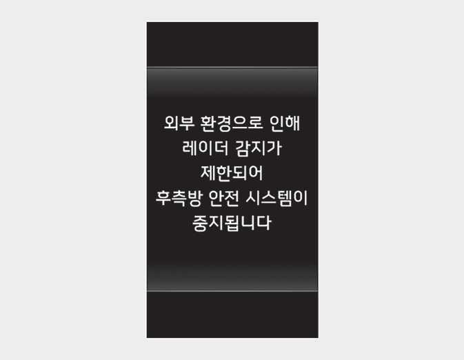 인식 센서 경고문이 표시되지 않거나 경고등이 켜지지 않더라도 후측방 충돌방지 보조가 정상 작동하지 않을 수 있습니다.