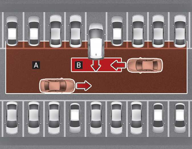 후진 중 좌/우측에서 다가오는 차량을 인식하여 충돌 위험이 판단되면 경고문 표시와 경고음 등으로 운전자에게 알려주고, 충돌 하지 않도록 제동을 도와줍니다.
