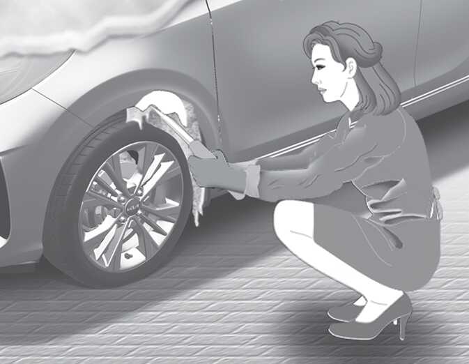 차의 밑부분 둘레에 있는 얼음 덩어리를 부품에 손상을 주지 않도록 주의하면서 제거하십시오.