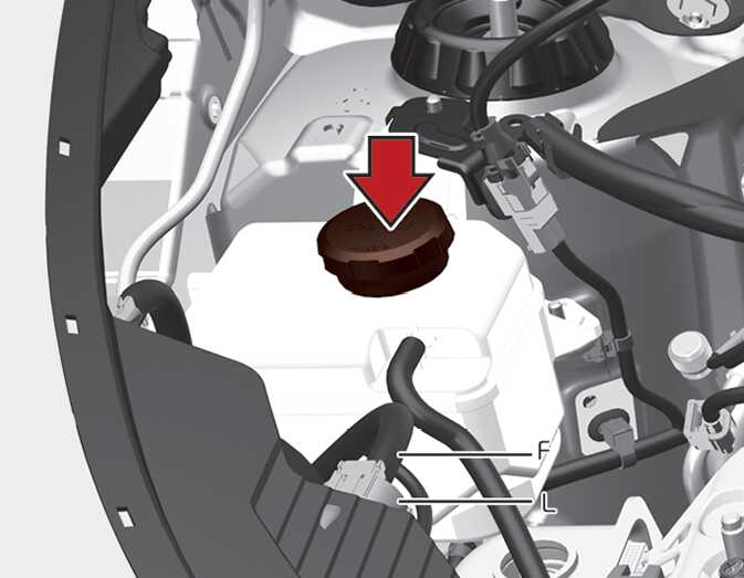 냉각수의 양은 엔진이 차가울 때 냉각수 보조 탱크 옆면에 표시되어 있는 최대선(F)과 최소선(L)사이에 있어야 합니다.