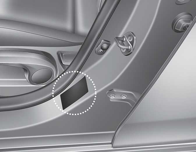 본 차량의 권장 타이어 공기압 정보는 운전석 옆센터 필러에 부착된 라벨 안에 표기 되어 있습니다.