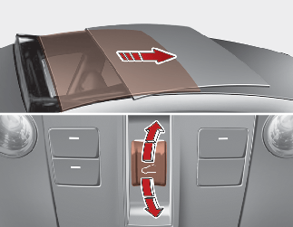 선루프 스위치를 뒤쪽으로 첫번째 걸리는 위치까지 누르면 선루프 글라스가 열립니다. 단, 파워 선블라이드가 닫혀 있을 경우 파워 선블라인드가 먼저 열립니다. 스위치를 앞쪽으로 첫번째 걸리는 위치까지 누르면 글라스가 닫힙니다. 단, 글라스가 닫혀 있을 경우 파워 선블라인드가 닫힙니다.