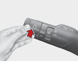 스위치를 계기판 방향으로 밀어 놓는다. 또는 운전자 방향으로 당기고 있는다. (계기판에 상향표시등( |