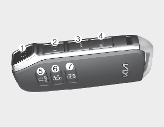 스마트 키의 원격 시동 버튼을 이용하여 원격으로 시동을 걸 수 있습니다. 차량과 10 m 이내에서 도어 잠금 버튼을 눌러 도어를 잠근 후 4초 이내에 원격 시동 버튼을 2초 이상 누르면 시동이 걸리고 비상등이 3회 깜빡여 시동이 걸렸음을 알려줍니다. 원격 시동을 끄려면 원격 시동 버튼을 1회 누르십시오.