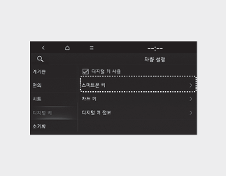 * 인포테인먼트 시스템 사양 미적용 시: 계기판 메뉴에서 '디지털 키→스마트폰 키' 하위 메뉴로 이동하여 '등록'을 누르십시오.