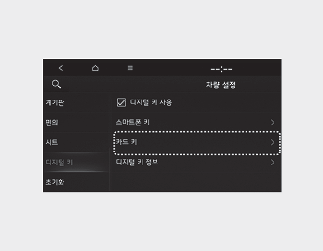 * 인포테인먼트 시스템 사양 미적용 시: 계기판 메뉴에서 '디지털 키→디지털 키 사용' 체크 해제