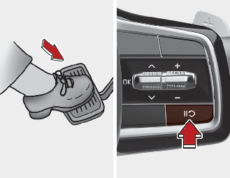크루즈 컨트롤 작동을 일시적으로 해제할 수 있습니다.