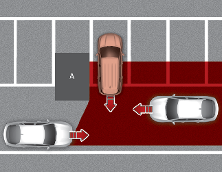 사선으로 주차된 차량이 후진으로 출차할 경우 좌·우측에서 다가오는 차량을 인식하지 못해 후방 교차 충돌방지 보조의 성능이 저하되어 경고, 제동을 도와주지 않을 수 있습니다.