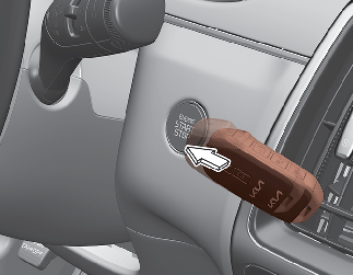 스마트 키의 배터리가 약하거나 고장으로 인하여 시동이 걸리지 않을 때는 스마트 키로 시동 버튼을 직접 누르십시오.