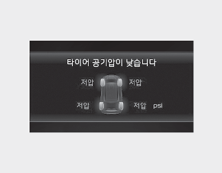 차량 출발 후 약 1~2분이 지나면 타이어 공기압을 확인할 수 있습니다.