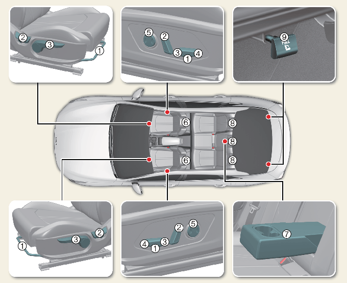 Use extreme caution when picking up small objects trapped under the seats or between the seat and the center console. Your hands might be cut or injured by the sharp edges of the seat mechanism.