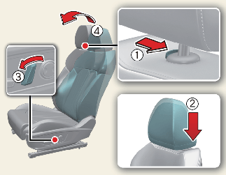 If you recline the seatback towards the front with the headrest and seat cushion raised, the headrest may contact the sun visor or other parts of the vehicle.