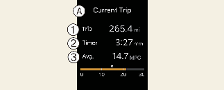 The trip computer mode displays information related to vehicle driving parameters including fuel economy, tripmeter information.