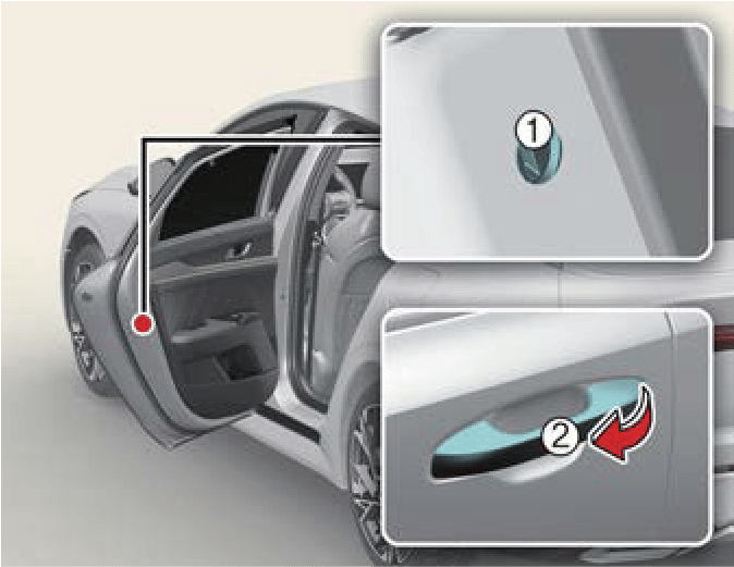 To allow a rear door to be opened from inside the vehicle, unlock the child safety lock.