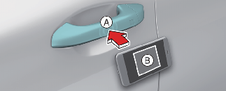 To lock or unlock the doors with a registered smartphone, touch the NFC antenna on the smartphone on the authentication pad of the driver's or passenger's outside door handle for about 2 seconds.