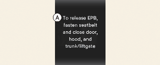 To release EPB, fasten seatbelt, close door, hood, and trunk/liftgate