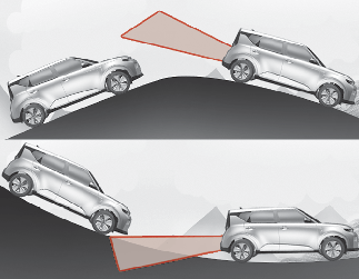 Der Totwinkel-Kollisionsvermeidungsassistent funktioniert möglicherweise nicht ordnungsgemäß, wenn Sie an einer Steigung fahren. Das System kann das Fahrzeug in der benachbarten Fahrspur möglicherweise nicht oder den Boden oder die Konstruktion falsch erkennen.