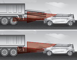 Wenn Sie einen Anhänger oder ein anderes Fahrzeug ziehen, schalten Sie den Frontalkollisions-Vermeidungsassistenten aus Sicherheitsgründen aus. Wenn Sie einen Anhänger europäischer Bauart schleppen, kann die Funktion eingeschränkt sein.