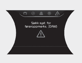 Føreroppmerksomhetsvarselet er ikke en erstatning for sikre kjørevaner, men kun en komfortfunksjon. Det er alltid førerens ansvar å kjøre forsiktig for å forhindre at det oppstår uventede og farlige situasjoner. Ta alltid hensyn til veiforholdene.