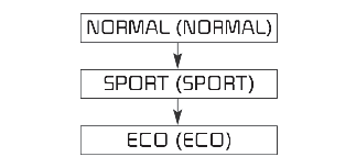 Modusen endres som vist nedenfor når du trykker på knappen DRIVE MODE (kjøremodus).