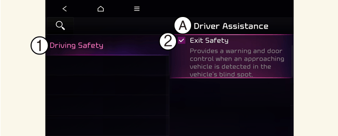 If the vehicle is restarted, Safe Exit Warning will maintain the last setting.
