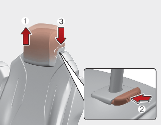 Levántelo hasta el tope, pulse el botón de desbloqueo (1) y tire del reposacabezas hacia arriba (2).