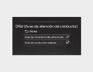 Si selecciona "Leading Vehicle Departure Alert" (Aviso de movimiento del vehículo de delante), la función informará al conductor cuando el vehículo que esté delante inicie la marcha desde parado.