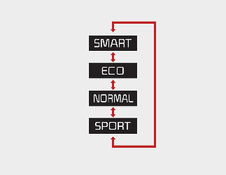 El modo de conducción cambiará al modo NORMAL cuando se reinicie el motor. Excepto cuando se encuentre en el modo ECO y SMART. El modo ECO (eco) y el modo SMART (inteligente) se mantendrán de forma continua, según se hayan seleccionado al volver a arrancar el motor.