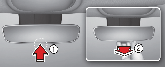 Povucite polugu za dan/noć prema sebi (2) za smanjenje odsjaja prednjih svjetala vozila iza vas, tijekom noćne vožnje.